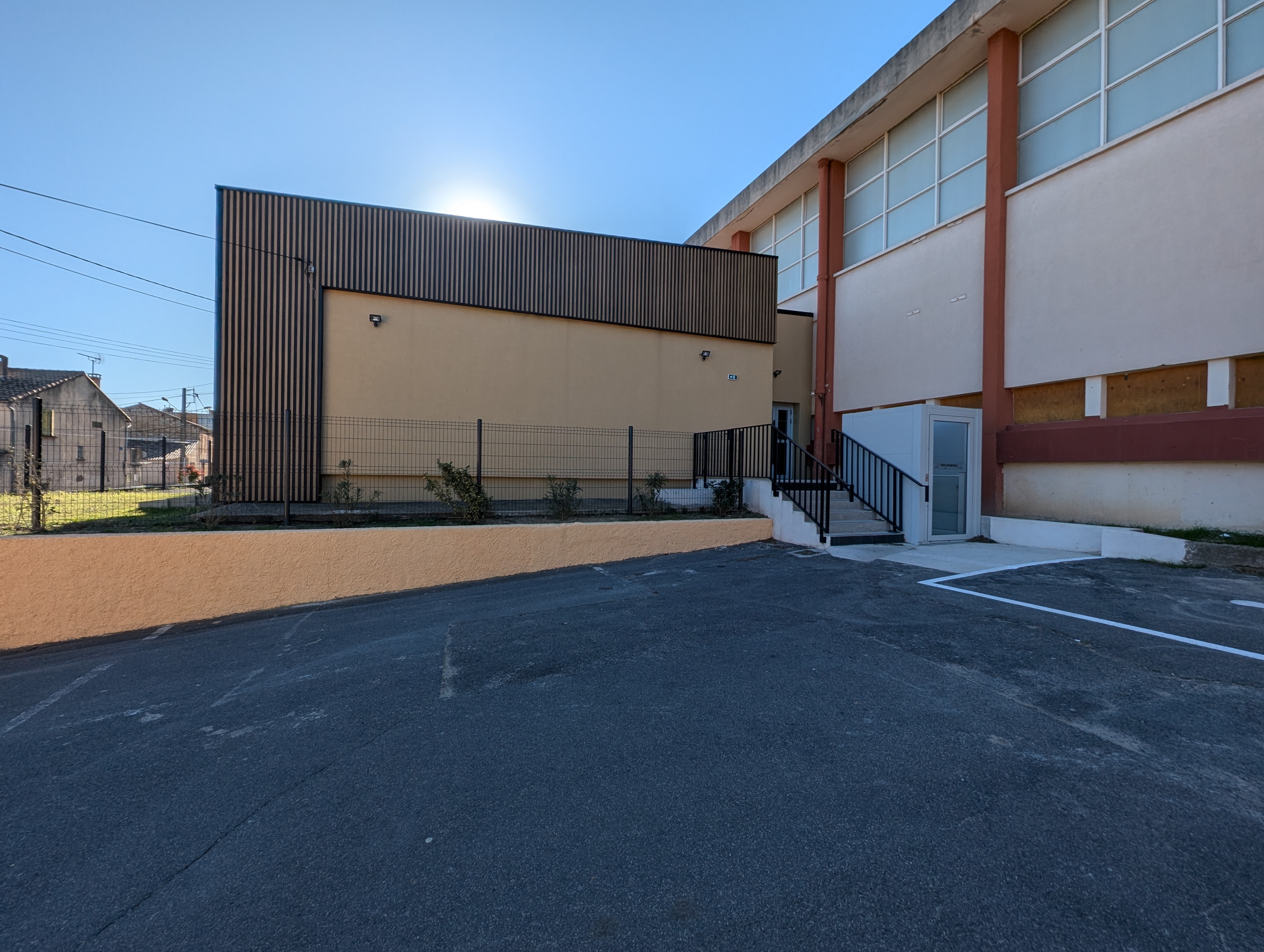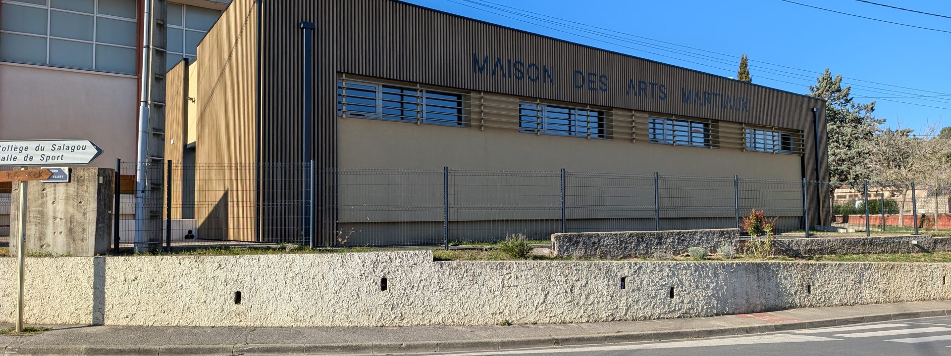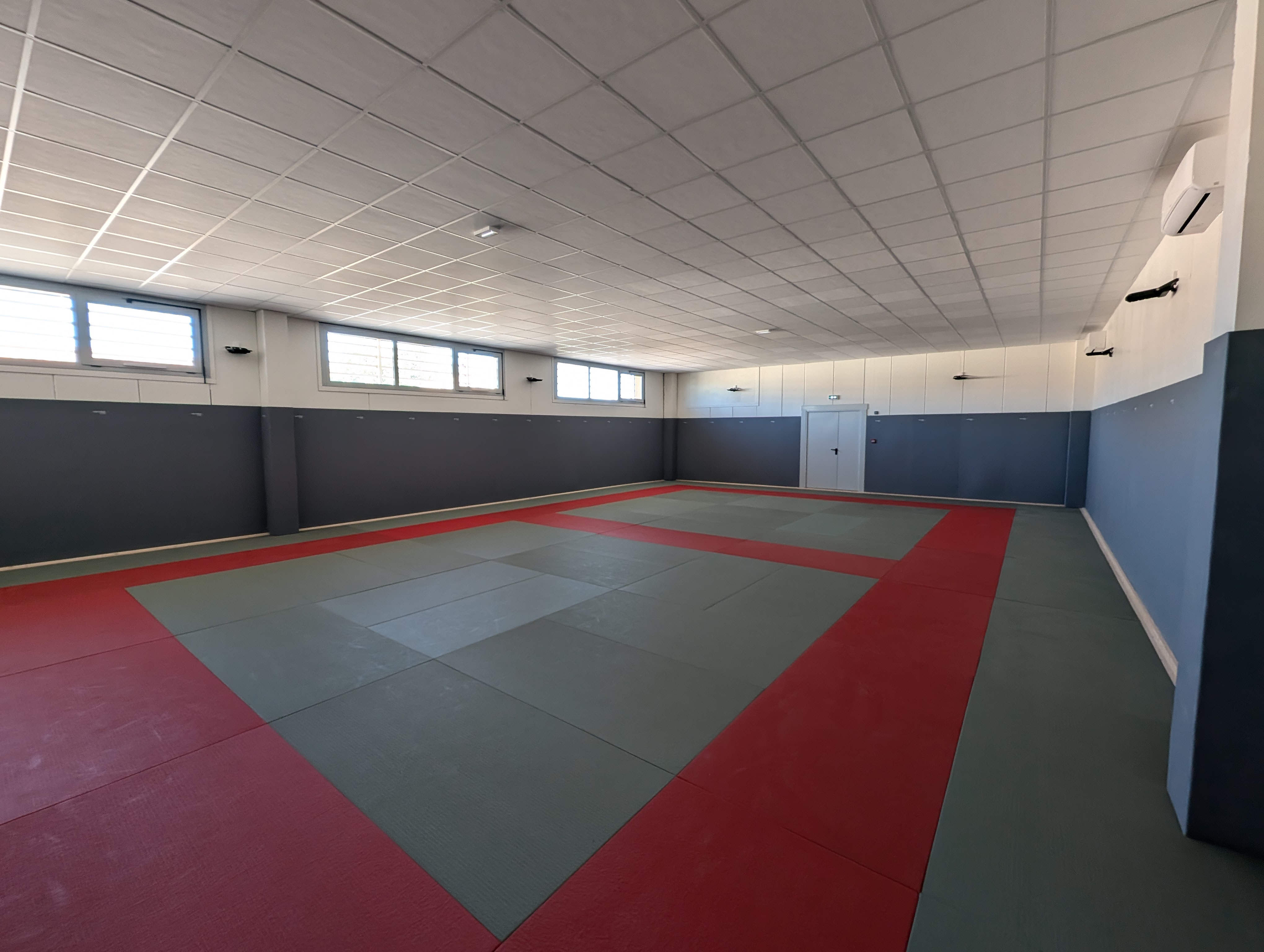 Attenant au gymnase de Clermont l’Hérault se trouvait une salle d’haltérophilie. La commande de la ville implique de reconstruire cette salle à l’arrière du gymnase pour transformer celle-ci en Dojo. De cette manière, l’association de Judo peut s’installer dans ces nouveaux locaux remis aux normes de sécurité incendie et d'accès pour les Personnes à Mobilité Réduite. Selon la réglementation française de Judo, l’espace intérieur est réaménagé intégrant un espace tatamis avec des vestiaires ainsi qu’une salle d’accueil et d’attente. Ce projet fait office de vitrine du gymnase, façade la plus visible depuis la rue. Elle se veut moderne et attractive pour mettre en valeur ces activités.
