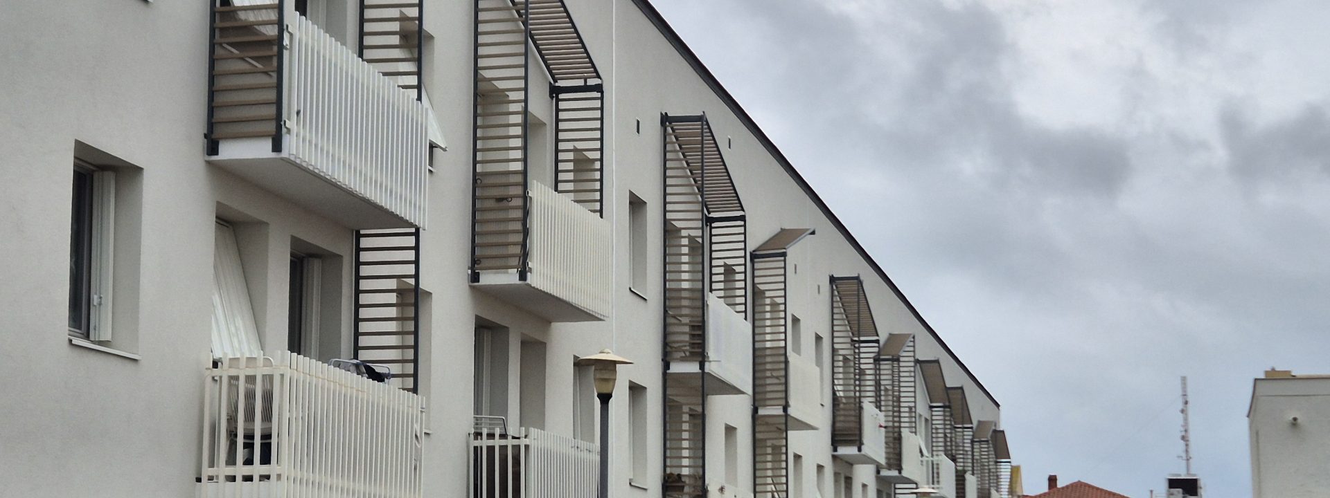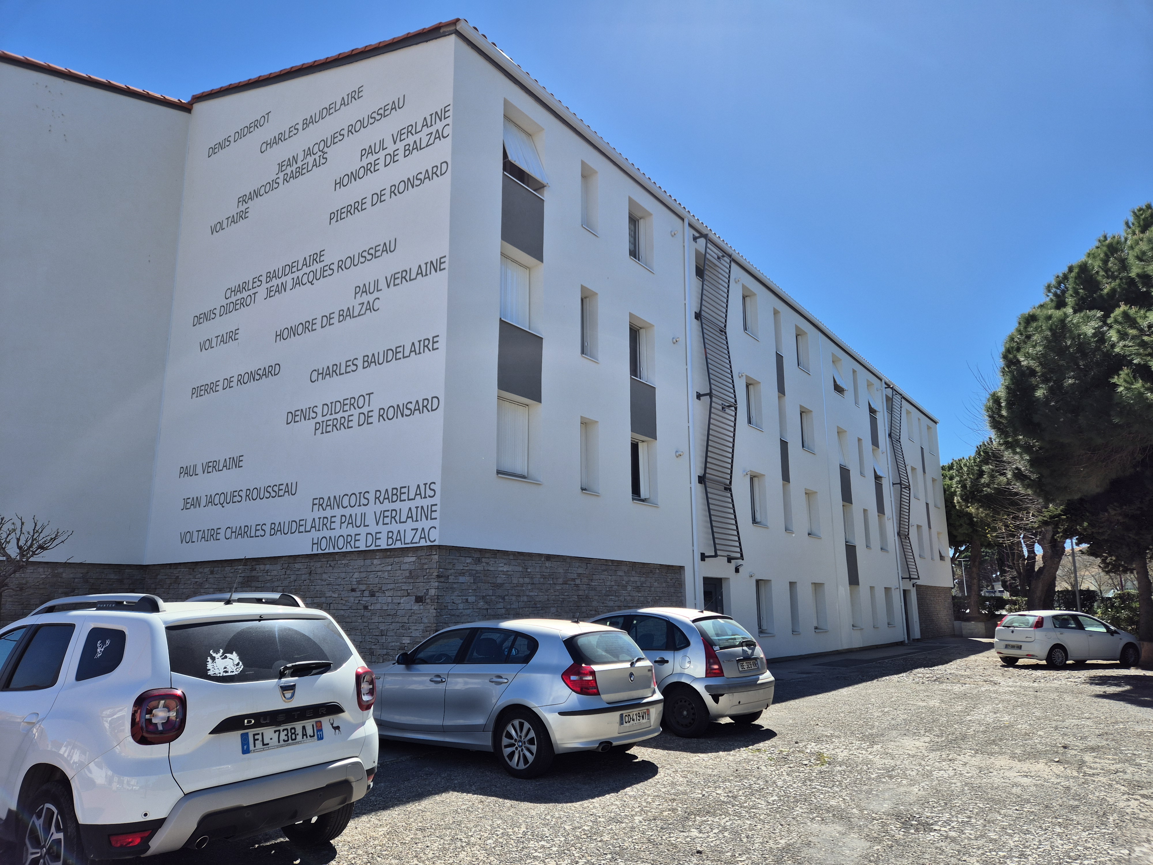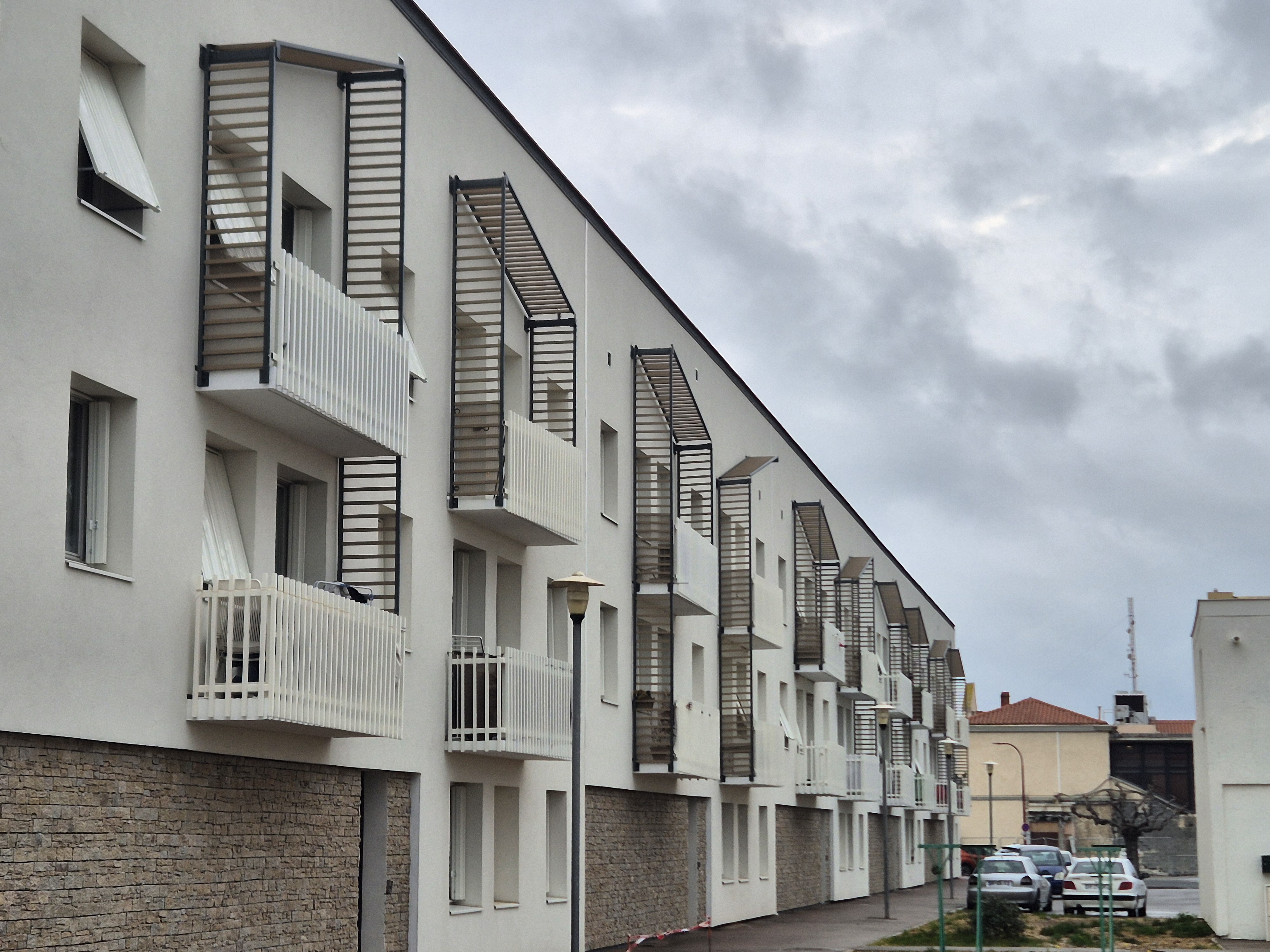 La résidence Paul Carrière forme un îlot urbain peu dense et s’articule autour de zones piétonnes généreuses en partie centrale. Les 9 bâtiments proposent des formes architecturales variées, avec des barres, une tour de quatre étages, ou bien encore quelques logements de type individuel groupé. L’environnement de la résidence est qualitatif et propose un cadre de vie agréable aux résidents. La réhabilitation de la résidence, répond à deux objectifs : une mise en valeur des entrées et une protection des balcons sur la façade sud avec des protections solaires, qui réduiront la surchauffe des logements. Une sérigraphie viendra animer le pignon côté route du bâtiment Le Verlaine, en reprenant le thème des écrivains des Lumières de la résidence. Sur le cœur d’îlot côté Sud nous pouvons imaginer un aménagement avec des jardins partagés qui d’une part limiteraient l’entretien du maitre d’ouvrage, mais surtout proposeraient des espaces rafraîchis, plus agréables à vivre au quotidien et mieux partagés par tous. Nous proposons une intervention plus importante pour le bâtiment Pierre de Ronsard qui trône au milieu de la résidence. L’entrée du bâtiment sera mise en valeur avec un aplat gris, qui fera signal. Nous proposons la création d’un ascenseur extérieur sur cette résidence afin de répondre à la demande grandissante d’accès aux logements pour les Personnes à Mobilité Réduite mais également vieillissante.